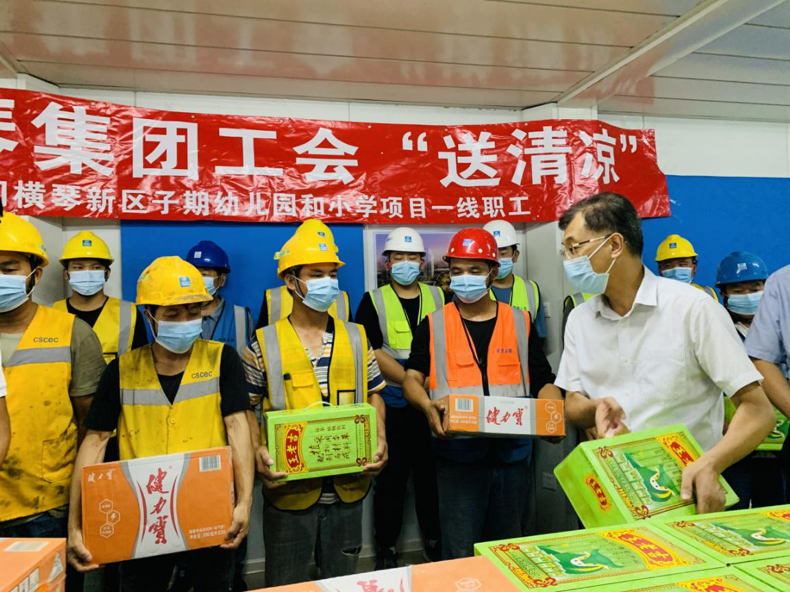 為進(jìn)一步加強(qiáng)高溫作業(yè)職工勞動(dòng)保護(hù)工作,關(guān)愛(ài)堅(jiān)守在項(xiàng)目一線(xiàn)的建設(shè)者,2021年7月,大橫琴集團(tuán)黨委書(shū)記、工會(huì)主席田偉帶隊(duì)分別赴科學(xué)城(二期)標(biāo)段一、標(biāo)段二項(xiàng)目、橫琴醫(yī)院項(xiàng)目、橫琴新區(qū)子期幼兒園和小學(xué)及保稅一小工程項(xiàng)目開(kāi)展夏日送清涼慰問(wèn)活動(dòng)。