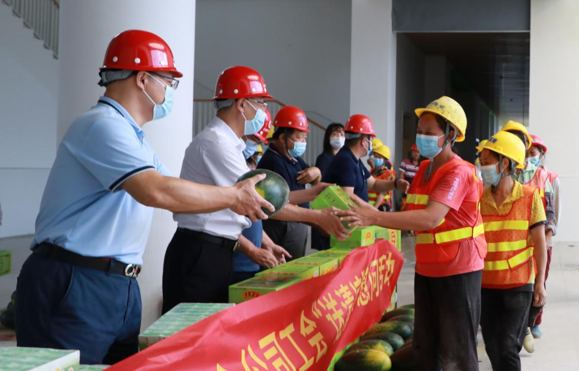 在項(xiàng)目現(xiàn)場(chǎng),慰問(wèn)組一行與項(xiàng)目負(fù)責(zé)人深入交流,詳細(xì)了解一線(xiàn)職工工生產(chǎn)生活情況,現(xiàn)場(chǎng)查看施工安全生產(chǎn)、勞動(dòng)保護(hù)和防暑降溫措施,并送上清涼飲料等慰問(wèn)品。