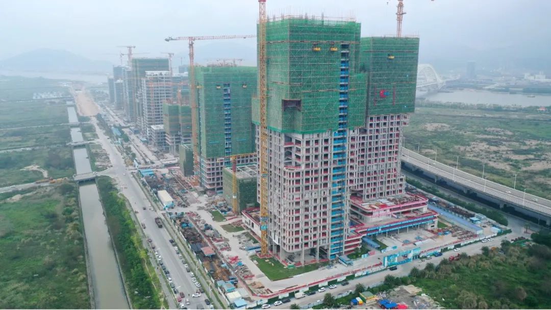 2023年4月25日,由大橫琴置業(yè)有限公司投資建設的橫琴科學城(二期)標段二項目迎來首棟SA4號樓138.8米超高層結構封頂,同時也是橫琴科學城產業(yè)園首棟超高層封頂,項目至今已累計完成6棟結構封頂,接下來將進入全力沖刺剩余3棟SA1、SA2、SA3號樓超高層(其中最高棟SA3號樓為180米)結構全面封頂階段。
