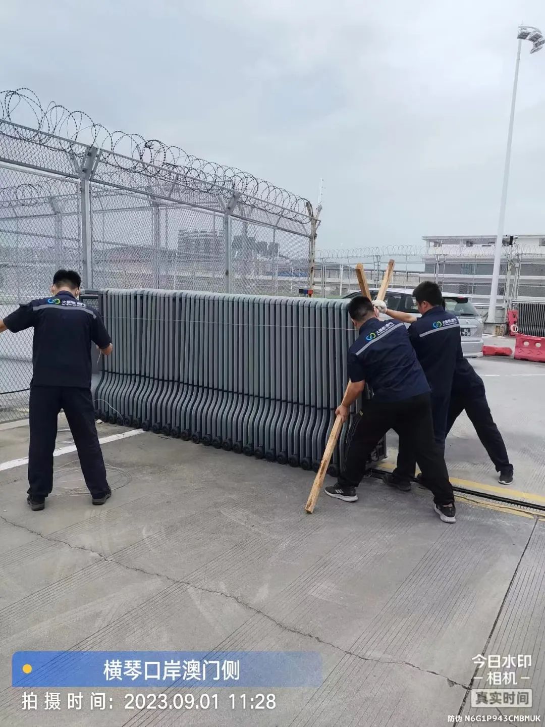 截止目前,大橫琴置業(yè)公司對在建項目內(nèi)部的排洪渠、項目內(nèi)部積水、塔吊等大型機械和腳手架、斗門項目臨海等三防風險點已完成全面排查整改:項目內(nèi)部排洪渠已完成清淤防止渠道堵塞,各基坑臨邊已設置隔離警示設施,外部腳手架已加強連接,臨時用電已全部切斷電源,大型機械設備已按照規(guī)范放置、臨時建筑已設置地錨防風繩。