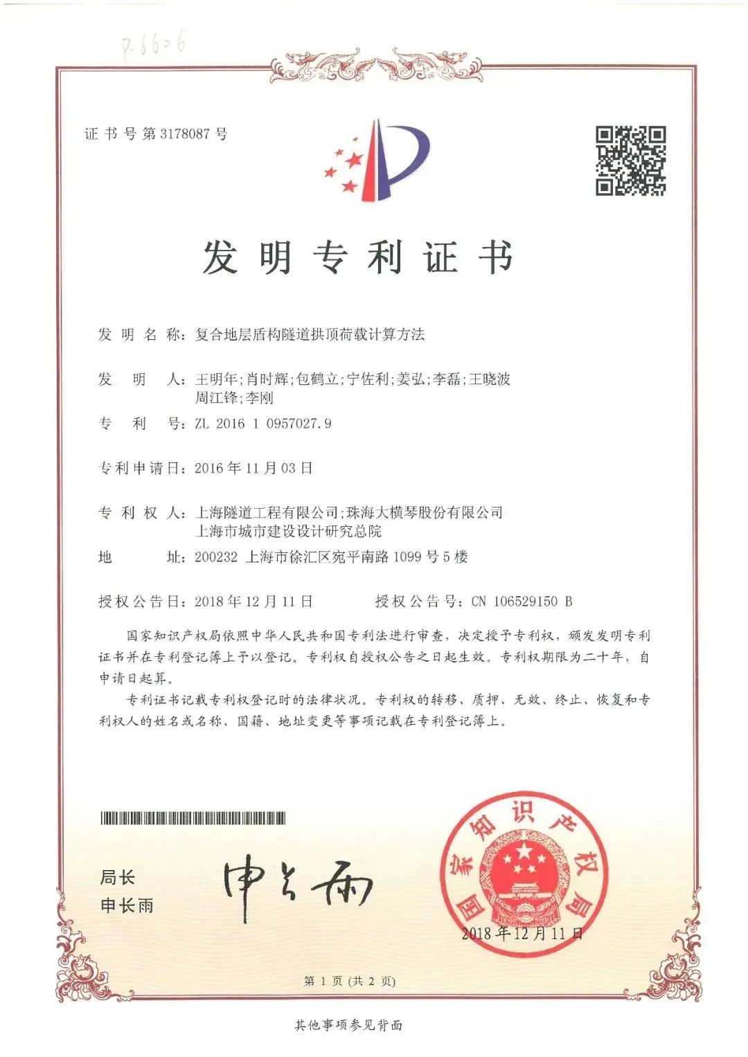 橫琴隧道在經(jīng)過評審委員會評審,指導(dǎo)委員會審定以及網(wǎng)站公示等程序,以優(yōu)異的科技成果和工程質(zhì)量脫穎而出。本次殊榮的獲得是建筑行業(yè)系統(tǒng)對該項目多年來取得的科技成果以及工程質(zhì)量的重要肯定。目前已形成科技成果29項,其中發(fā)明專利8項,國家實用新型專利18項,科技論文17篇,軟件著作2項。