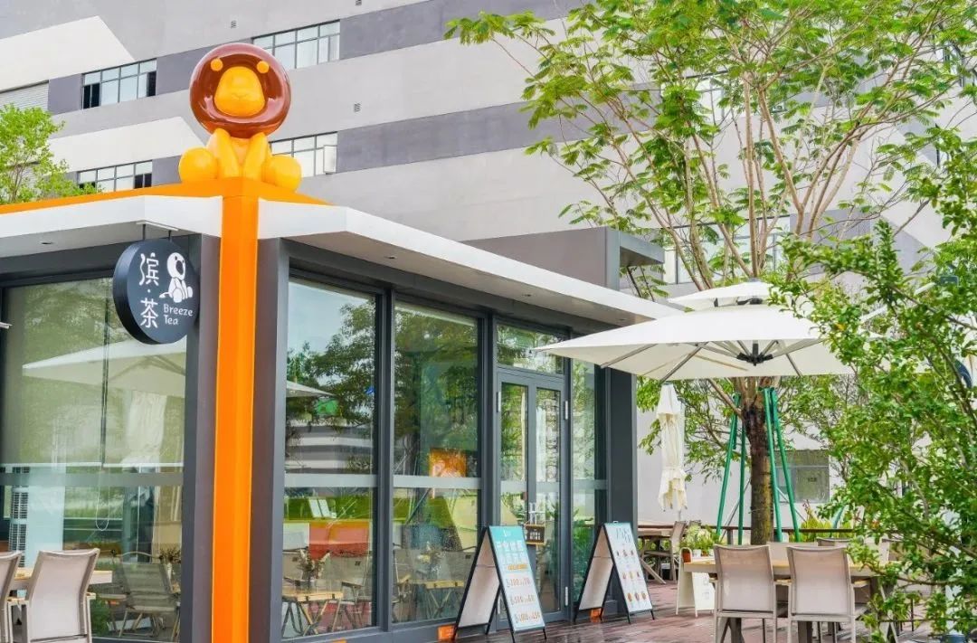 廠區(qū)內(nèi)的濱茶奶茶店將周邊打造成一個(gè)時(shí)尚、休閑的社交空間,創(chuàng)造了一個(gè)多樣化、充滿活力的休閑區(qū)域。