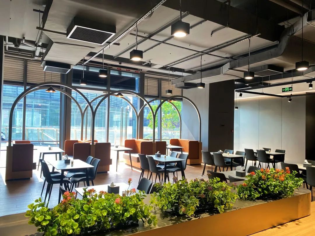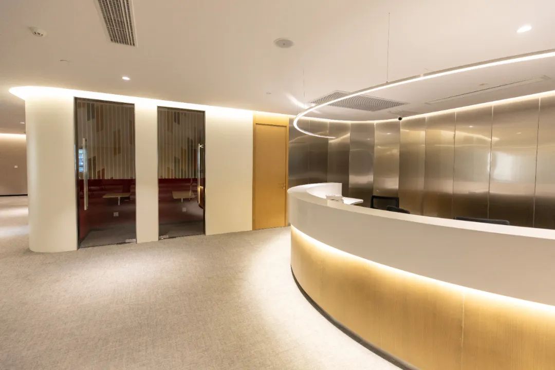 沒有鮮艷的色調(diào),摒棄傳統(tǒng)辦公空間所青睞的金碧輝煌風(fēng),改用棕色座椅搭配著灰白色地毯,咖色沙發(fā)搭配棕紅色背景墻,慢慢過渡的色彩讓整個空間更加柔和、干凈和高雅,無論是辦公還是社交,都能給人提供一個有溫度的空間,讓科創(chuàng)er的工作和生活連結(jié)地更加融洽。