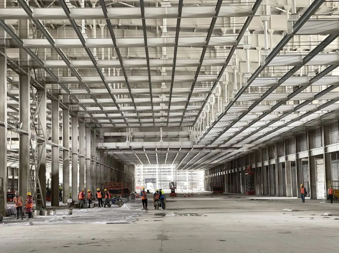 自從項(xiàng)目啟動(dòng)后,所有參建人員搶時(shí)間、趕進(jìn)度,15天完成4萬余平方米的場地軟基處理,22天達(dá)成4萬余平方米的底板及承臺(tái)施工,30天搞好2400余根工程樁的施工與檢測,45天結(jié)束7400余噸的鋼結(jié)構(gòu)主體安裝施工,并克服兩次臺(tái)風(fēng)、三次暴雨的惡劣天氣影響,僅用時(shí)97天,建成了11.7萬平方米廠房,再次刷新“大橫琴速度”!
