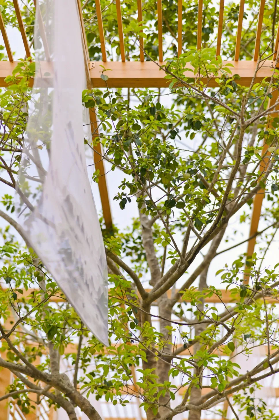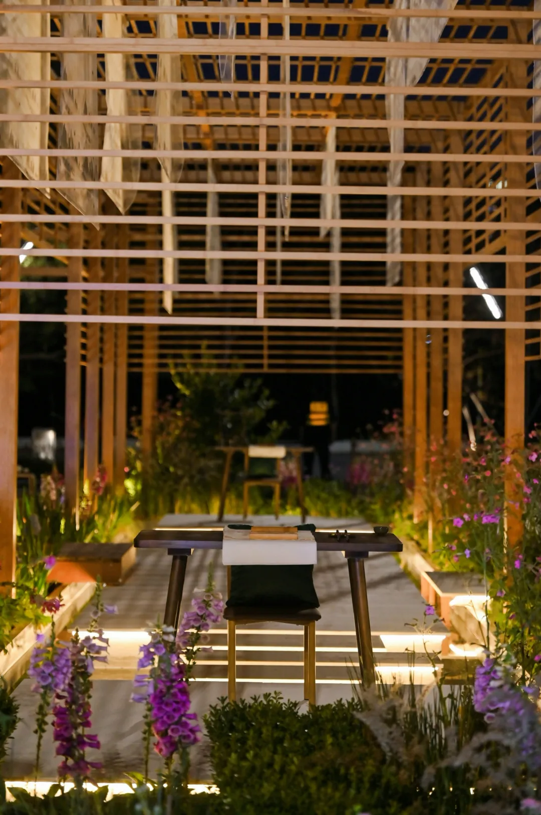 樹影婆娑,花香四溢,檸檬草、龍井茶、毛尖、柑橘、迷迭香等香草類植物,洋溢著沁人的花草清香,與茶文化主題交織呼應(yīng)。