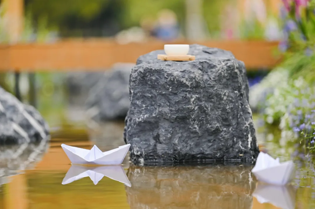 歷史上,珠三角是明清海上絲綢之路上的重要樞紐,中國的茶與茶文化通過海上絲綢之路傳遍世界各地。橫琴展園以流動水渠與懸挑水上茶品,巧妙象征了從明清海上絲綢之路到現(xiàn)代共建“一帶一路”的歷史傳承。
