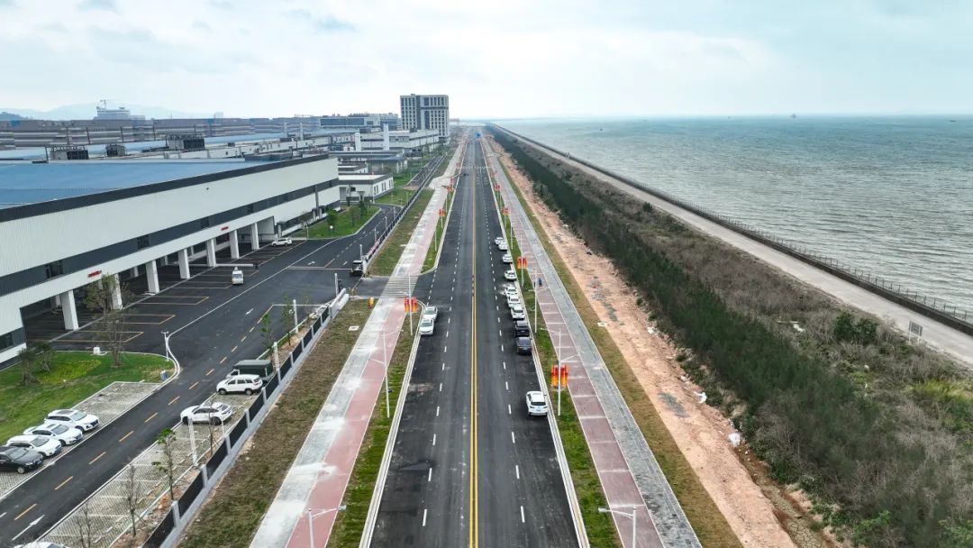 2024年1月30日,雷蛛大道、欣港路、馬山北路等4條主路和其他路段約6km的道路已按期完成,二圍北片區(qū)初步形成“一大環(huán)、兩小環(huán)”交通網(wǎng)絡,基本滿足各廠區(qū)出入需求。