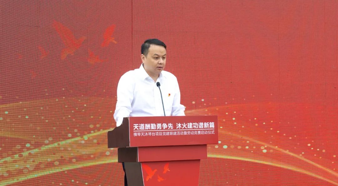 3月28日,由大橫琴置業(yè)投資建設(shè)的橫琴天沐琴臺項目舉辦黨建聯(lián)建暨勞動競賽啟動儀式。廣東省委橫琴工委黨建工作處處長童鐵丁,珠海市總工會黨組書記、常務(wù)副主席唐尚洪,橫琴粵澳深度合作區(qū)行政事務(wù)局黨支部書記、副局長張文驥,橫琴粵澳深度合作區(qū)城市規(guī)劃和建設(shè)局黨總支委員、住房保障處處長鄭慧仙,珠海大橫琴集團有限公司副總經(jīng)理祝杰,珠海大橫琴置業(yè)有限公司黨總支書記、董事長唐文彬,中建八局華南分局黨委書記郭青松,各參建單位代表及工友代表約80人參加本次活動。