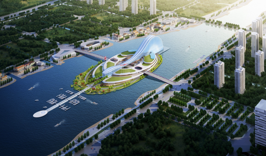 建筑、島嶼、橋梁空間互通,有機共融,打造地標(biāo)性島嶼建筑,助力構(gòu)建天沐河旅游休閑帶。
