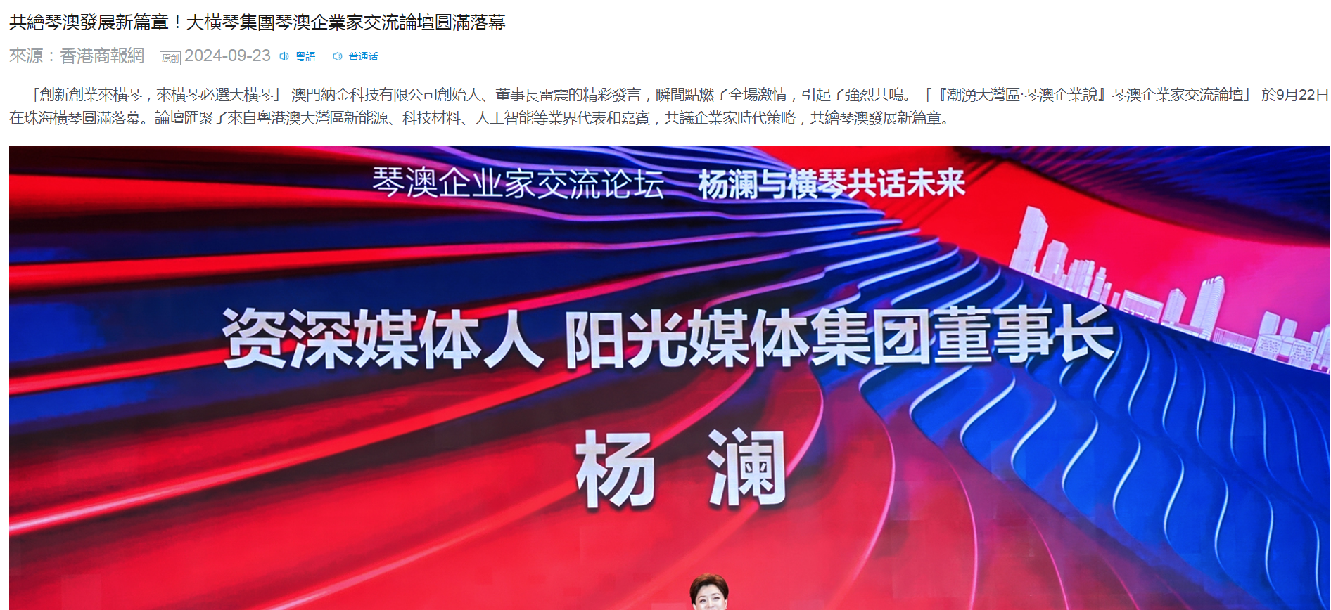 此次論壇由橫琴粵澳深度合作區(qū)(以下簡稱:合作區(qū))經(jīng)濟發(fā)展局支持,大橫琴集團、叡智蓮花公關(guān)服務(wù)有限公司聯(lián)合主辦,是繼「潮湧大灣區(qū)·澳門青年說」論壇後,大橫琴集團再次攜手資深媒體人、陽光媒體集團董事長楊瀾女士,匯聚來自粵港澳大灣區(qū)新能源、科技材料、人工智能等各行各業(yè)共500多位代表和嘉賓,共議企業(yè)家時代策略,共繪琴澳發(fā)展新篇章。