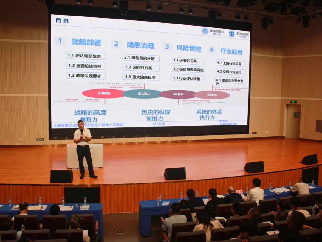 本次培訓(xùn)班為期一天,培訓(xùn)對象包括集團(tuán)本部業(yè)務(wù)骨干,各下屬企業(yè)安全總監(jiān)、安全生產(chǎn)和生產(chǎn)經(jīng)營(工程)部門負(fù)責(zé)人及業(yè)務(wù)骨干等170余人。培訓(xùn)方式為外部專家講課,培訓(xùn)緊緊圍繞“拓展管理思路、提高管理質(zhì)效”的主題,重點剖析安全風(fēng)險分級管控和隱患排查治理雙重預(yù)防機制,進(jìn)一步探討企業(yè)落實安全生產(chǎn)主體責(zé)任的對策建議。