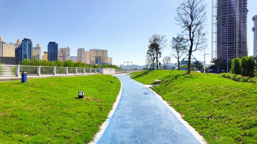 琴海東路位于橫琴島東側(cè),沿濠江而建,全長(zhǎng)4.8公里,與澳門(mén)隔江相望,這里自帶“濾鏡”,是橫琴游客觀光打卡的絕佳之地。