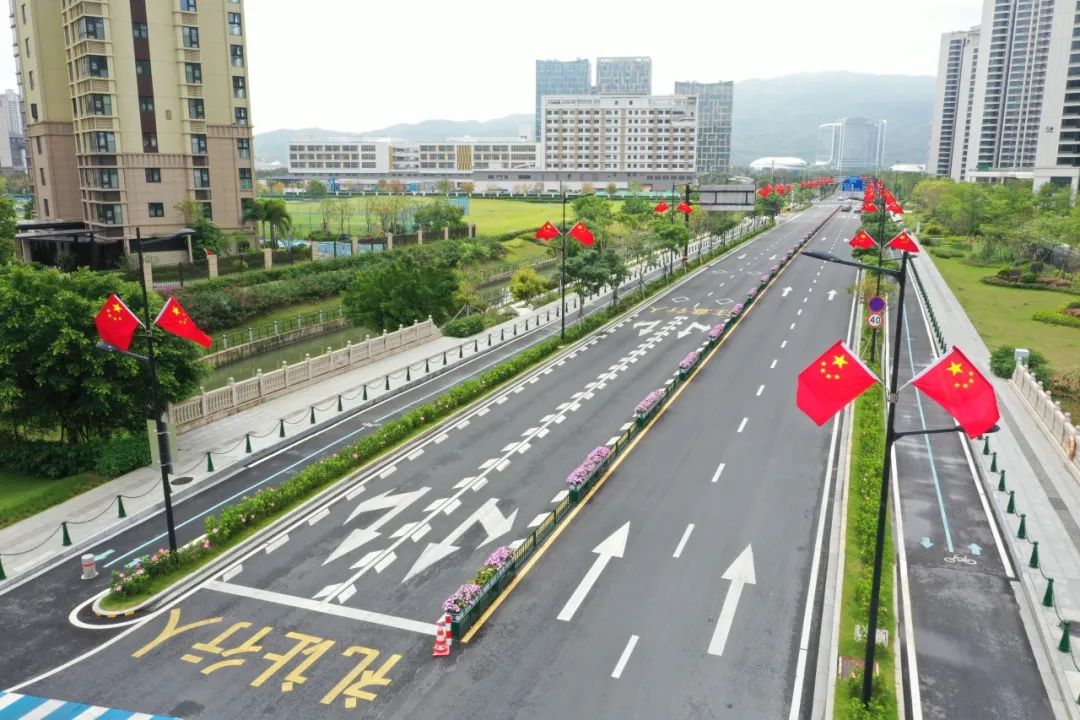 為助力營造濃厚的節(jié)日氛圍,大橫琴城資在橫琴大橋、環(huán)島東路、天羽道、港澳大道、環(huán)島北路等重點(diǎn)道路沿線懸掛1560面國旗。