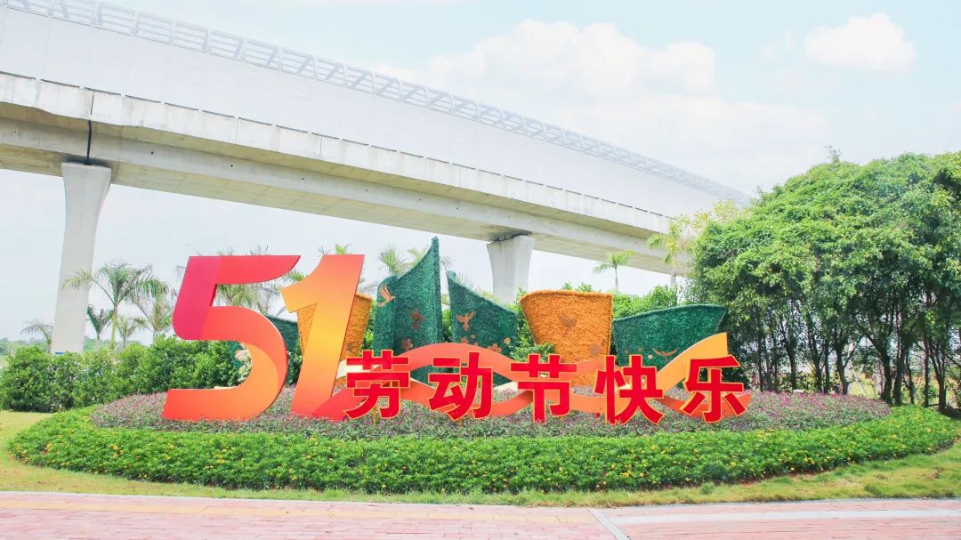 橫琴二橋市政綠地的造景則以 “51勞動節(jié)快樂” 為主題,精心搭配千日紅、木春菊等特色花卉,打造出繽紛絢麗的節(jié)日花境。這一抹亮色不僅為城市道路增添了靈動色彩,給過往的行人和車輛帶來視覺上的享受,同時(shí)也傳遞出對每一位辛勤勞動者的崇高敬意和美好祝福。