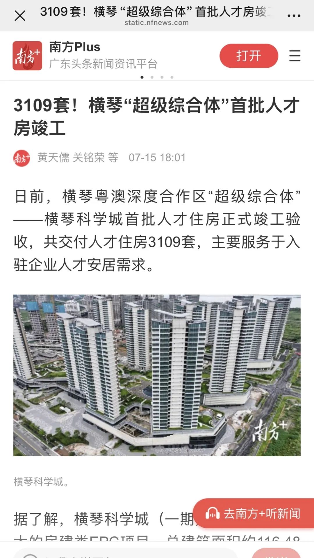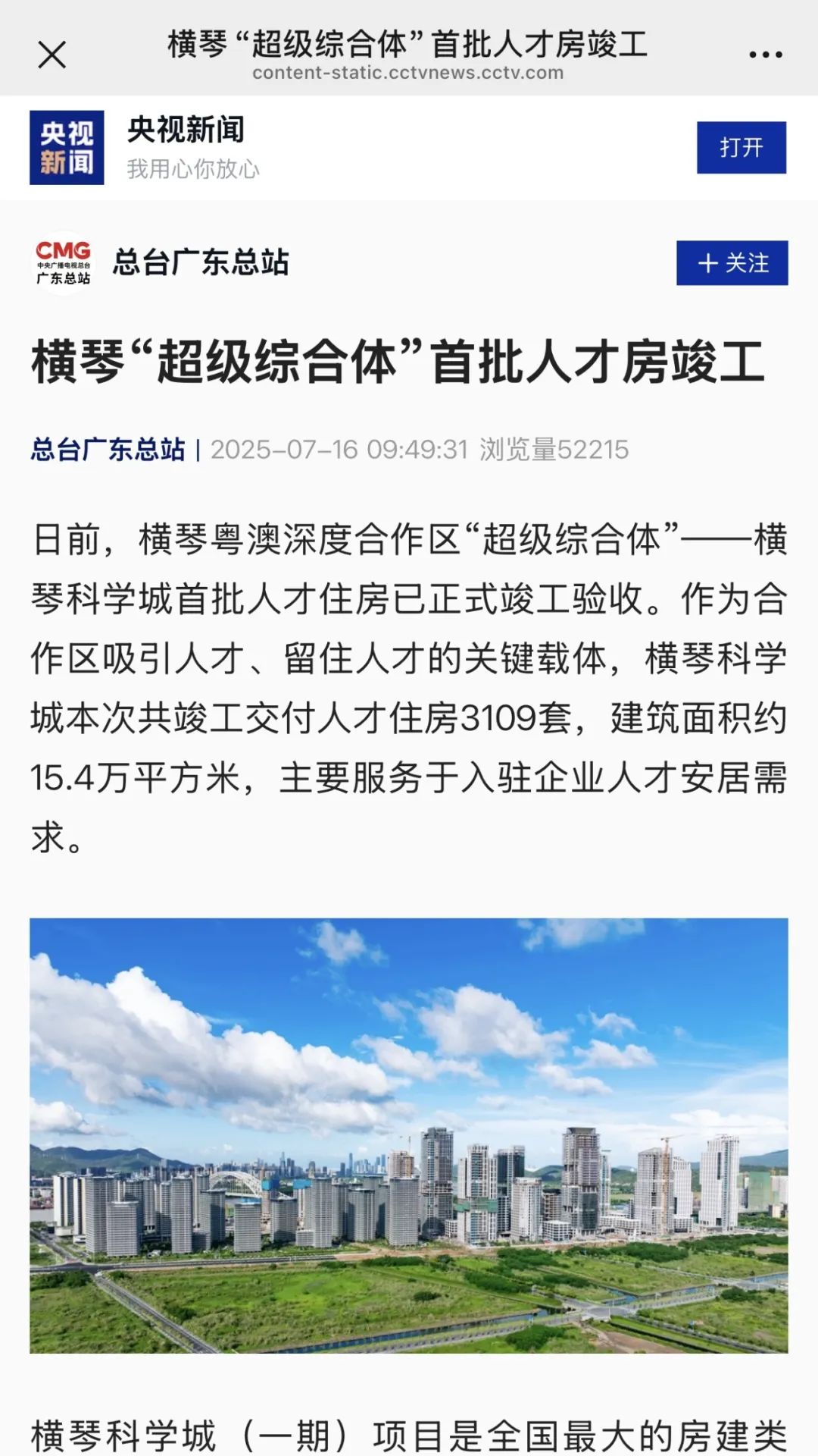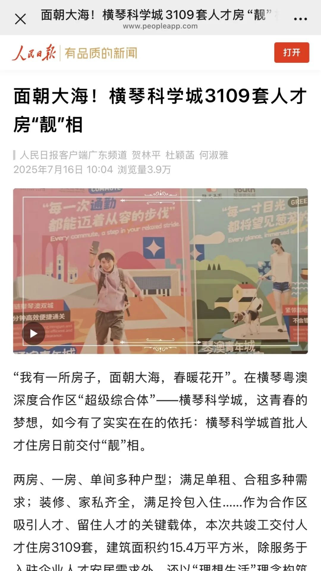 7月15日,在橫琴科學(xué)城首批人才住房正式竣工驗(yàn)收之際,由中央廣播電視總臺(tái)、新華社、人民日?qǐng)?bào)、南方日?qǐng)?bào)、南方都市報(bào)、羊城晚報(bào)、澳門日?qǐng)?bào)等近二十家權(quán)威媒體組成的媒體團(tuán),齊聚橫琴科學(xué)城(一期)現(xiàn)場(chǎng)展廳。作為珠光集團(tuán)精心打造、助力合作區(qū)吸引人才和留住人才的關(guān)鍵載體,本次首批人才住房包括2棟人才住房,5棟公寓,可提供住房3109套。其中,2200套公寓由珠光集團(tuán)運(yùn)營(yíng)管理,打造“琴澳青年城”,通過(guò)“理想生活”概念構(gòu)筑灣區(qū)青年人才社區(qū),重新定義琴澳新青年的生活新方式。聽取項(xiàng)目介紹后,媒體團(tuán)一行深入項(xiàng)目C區(qū)(琴澳青年城)樣板間參觀采訪。