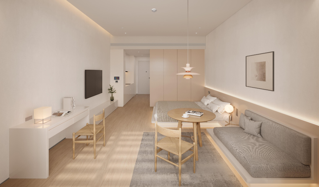 人文關(guān)懷時刻滲透生活場景。員工宿舍中,33-47平方米單間占比近90%,首層共享廚房飄散著家常煙火;專家公寓21%為一房以上戶型,引入酒店式保潔與健身服務(wù);四組分散式食堂與900平方米宴會廳通過地下廚房聯(lián)動,既能滿足日常餐飲,亦可瞬時承接千人國際會議。在這里,每一寸混凝土都承載著創(chuàng)新的重量,每一扇落地窗都映照著產(chǎn)業(yè)的未來?!@是珠光集團(tuán)對創(chuàng)新生態(tài)的溫暖承諾。