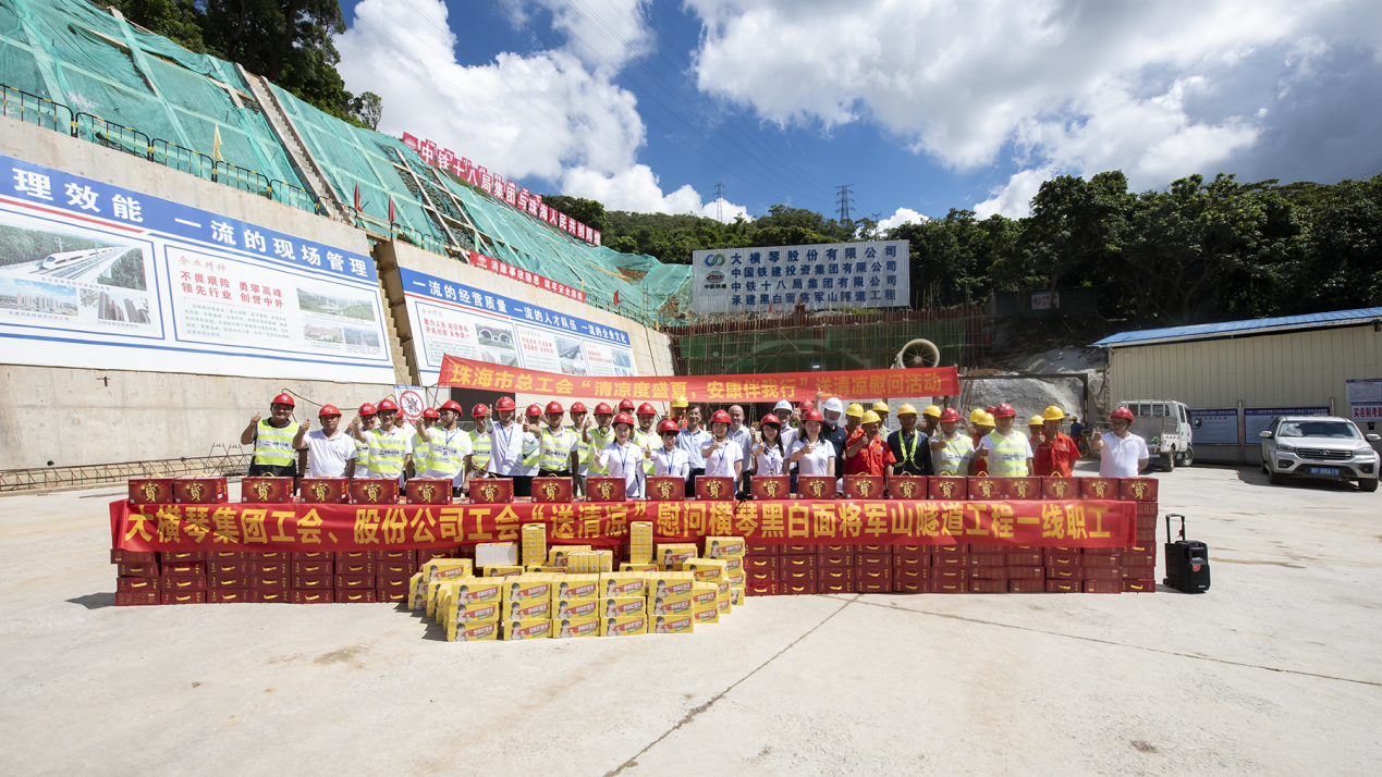 7月23日上午,橫琴新區(qū)總工會副主席、大橫琴集團黨委書記、工會主席田偉帶隊赴橫琴先進智能計算平臺項目及橫琴黑白面將軍山隧道工程項目開展夏日送清涼慰問活動。